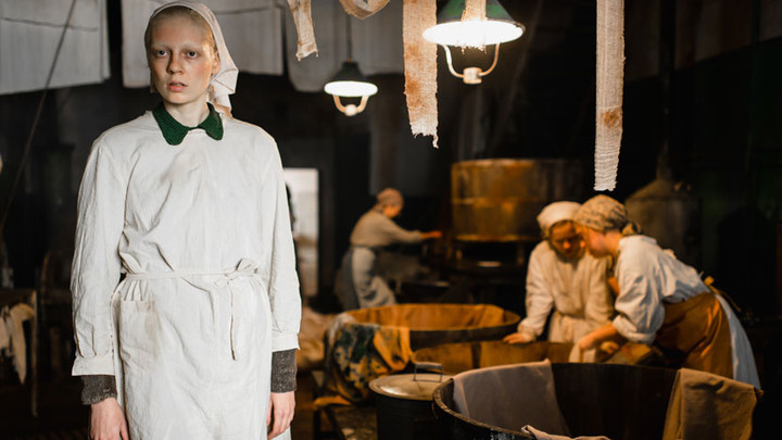 It’s filmed with a lush, warm palette of greens and red ocres, clothing and interiors. Balagov said that the rusty reds represented trauma and emotional decay, and the greens represented new life and rebirth – the two main themes of the film. The effect is both cosy and claustrophobic and seems to reinforce the bond between the two women. This colour scheme is only occasionally broken for effect, most strikingly when Masha visits a family in a stately home, all cold blues and whites. In that scene she caustically describes the sexual bargaining that were necessary for protection and survival as a female soldier on the front – a ‘skill’ she carries with her to post-war Leningrad – and this is the only time either of the women’s traumatic past is recollected directly.