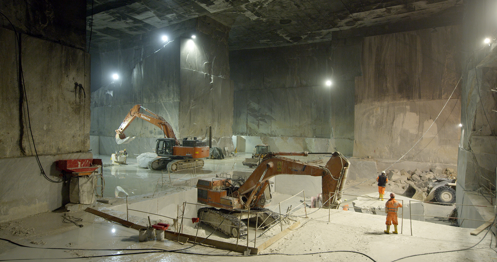 The six sites, all from Western Europe and north America, were presumably chosen for their vastness and range. We see acres of Californian countryside in the San Fernando Valley stripped in preparation for a new town, the boring of the Brenner Pass tunnel deep in a mountain on the Austrian / Italian border and the vast Gyöngyös open-cast lignite mine in Hungary. The film also visits the famous and literally monumental Carrara marble quarry, the Rio Tinto copper mine in Spain that dates back to Roman times, an eerie nuclear waste storage facility deep in a repurposed salt mine in Wolfenbüttel, Germany and polluted oil sands in Fort McKay, Alberta.