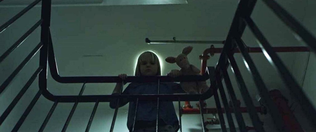 For most of the movie’s locations are limited to the family’s hotel room, hallway and staircase, with a brief excursion to the plantrooms in the basement, all windowless or curtained. It gradually feels very claustrophobic, which again underlines a sense that the situation is inescapable.