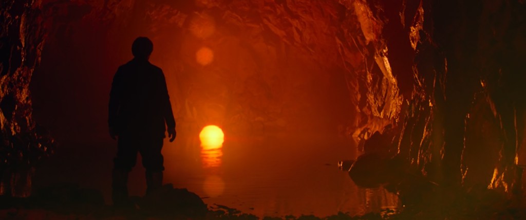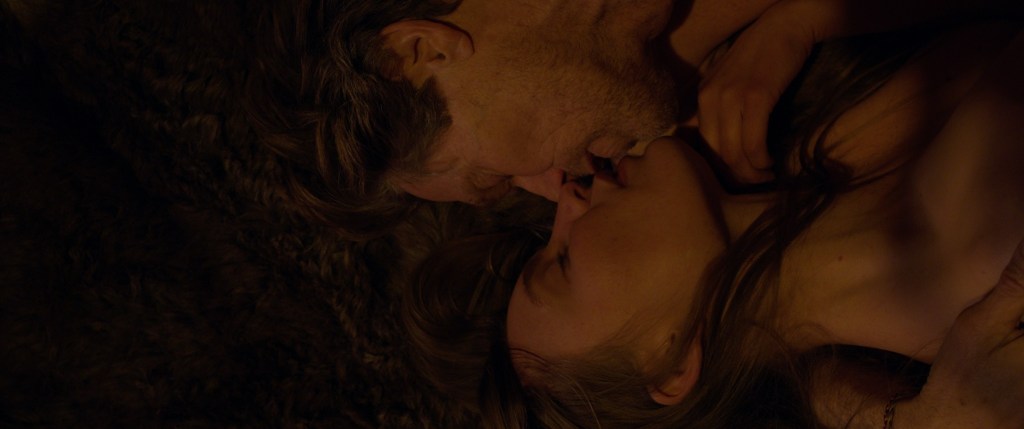 Much of the film is set in an icy mountainous wilderness, and cinematographer Stefano Falivene (Pasolini) captures some beautifully bleak landscapes; strangely these are given a mild teal tint in post-production that adds to its desolate mood, not unlike how silent movies used tints to express tone. Willem Dafoe’s character is dwarfed as he crosses these vast Arctic snowfields on a husky-drawn sled. The interiors, including caves and Clint’s bar, are phenomenally dark and populated by strange, grotesque individuals, like the deep recesses of Clint’s mind perhaps. And there are brief, perplexing visits to a brutal Russian death camp, and earlier to a subterranean lake that seeks like a version of Olafur Eliasson’s glowing ‘Weather Project’ re-sited in a cavern.